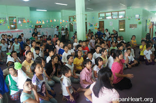 外では仏教徒の子どもたちが夕食の準備を手伝ってくれていました。